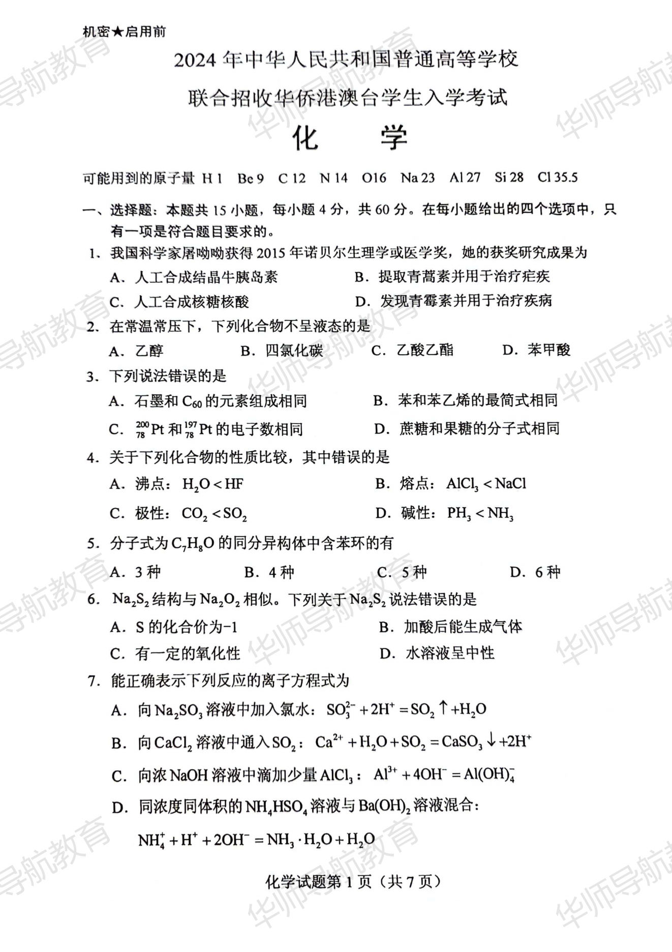 ·2024年华侨港澳台联考暑假班、全日制班、周末班报名招生中!! 微信号:13671693374