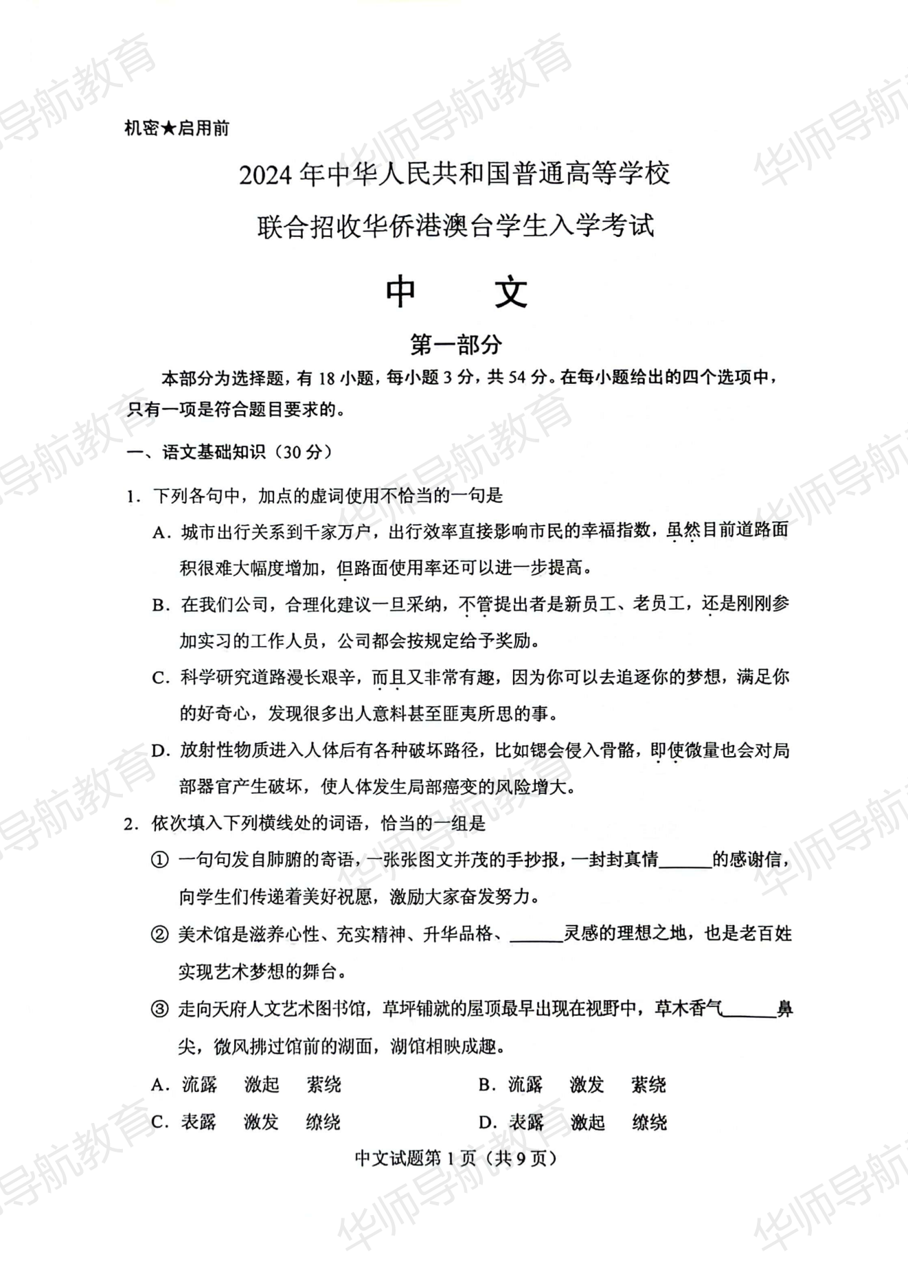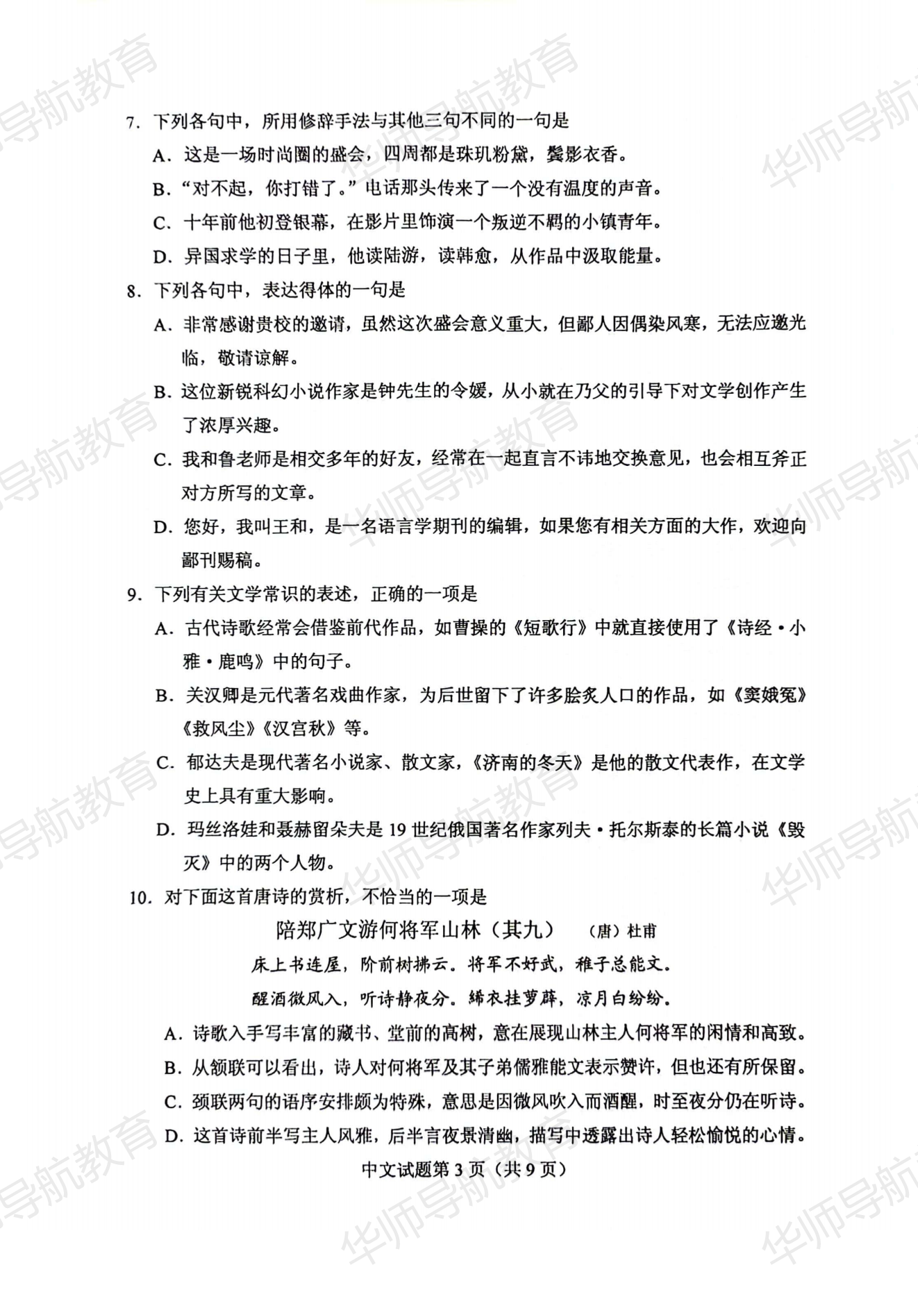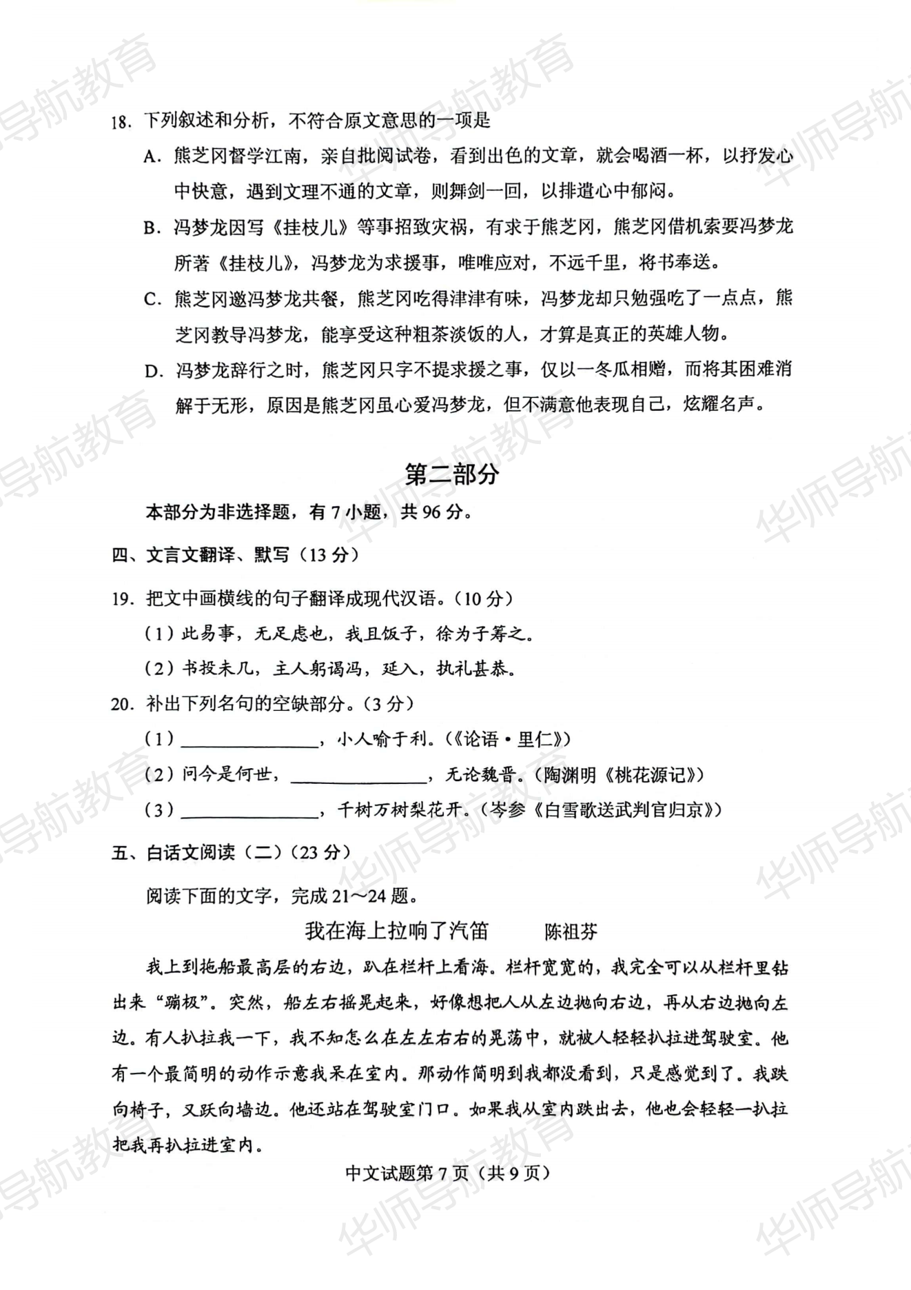 3. 試卷分為兩個部分,第一部分為選擇題,第二部分為簡答題和作文。